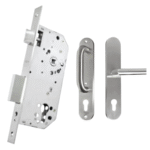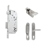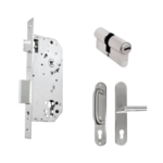Kit Cerradura de Embutir 50mm + Manija Milán con Escudo y Jaladera + Cilindro Llave – Llave o Mariposa