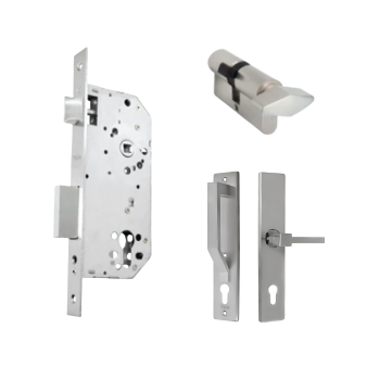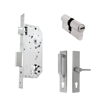 Kit Cerradura de Embutir 50mm + Manija Milán con Escudo y Jaladera + Cilindro Llave – Llave o Mariposa