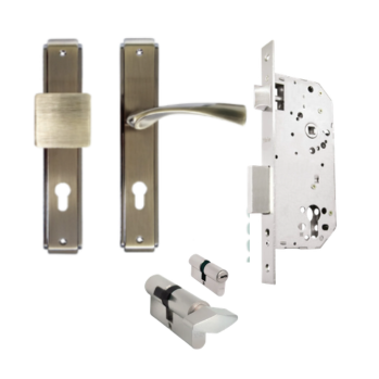 Kit Cerradura de Embutir 50mm + Manija Turín con Escudo y Jaladera + Cilindro Llave-Llave o Mariposa