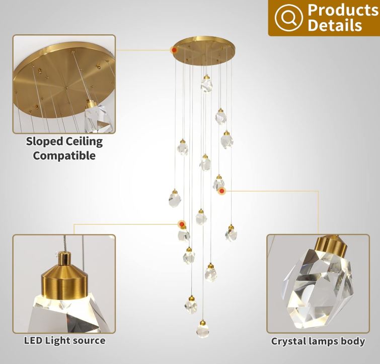 - Hermosa lámpara colgante de piso de cristal LED de 14 bombillas