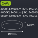 Panel Led 6W-12W-18W-24W P/Adosar y Empotrar Aluminio Base Negra