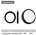 Panel Led 6W-12W-18W-24W P/Adosar y Empotrar Aluminio Base Negra