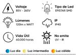 - Angulo de luz: 120°