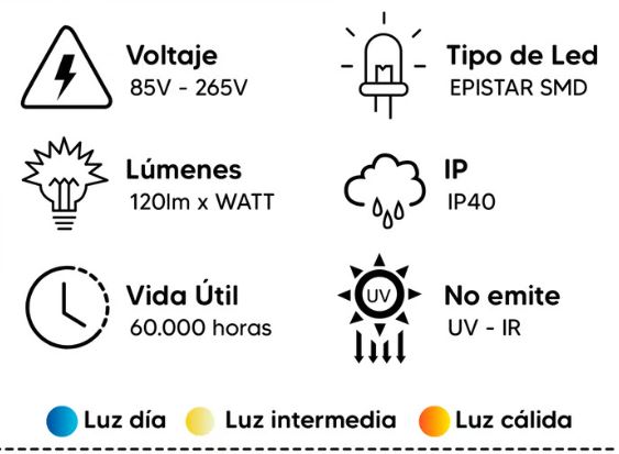 Temperatura de color Cálida 3000K , Neutras 4500K y Blanca 6500K