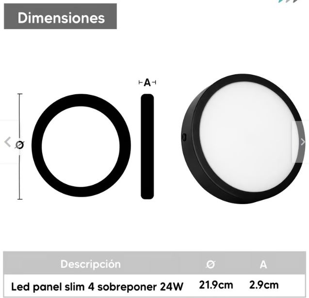 - Dimensiones 24w: ø21.9 x 2.9cm