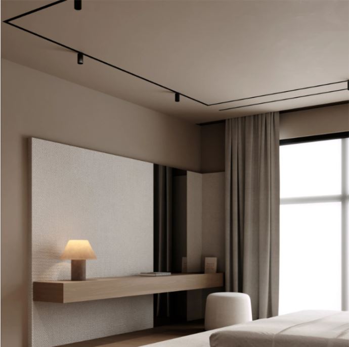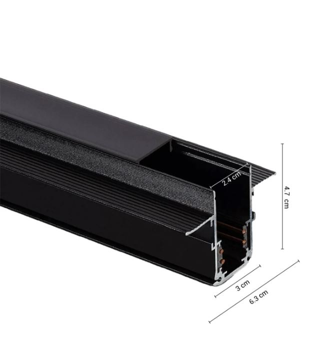 Este Riel se puede instalar empotrado a la pared o al techo. En el se puden colocar la variedad de luminarias magnéticas que sean necesarias.