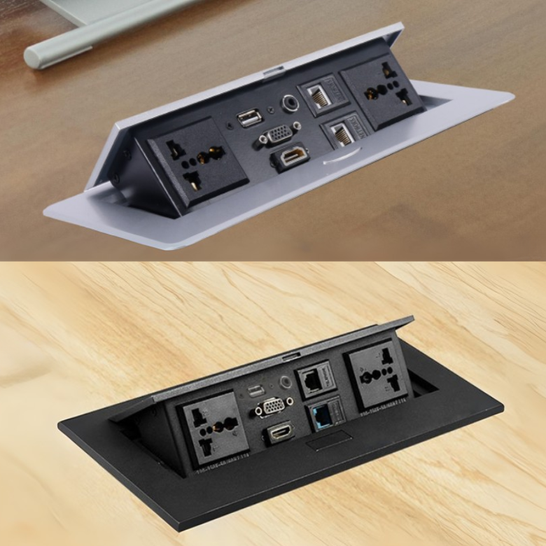 - Cuenta con 2 tomacorrientes universales +1 VGA + 1 AUDIO + 2 rj45 cat6 + 1 USB + 1 HDMI +